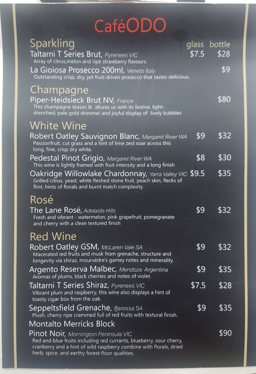 Cafe Odo Beer & Wine Menu